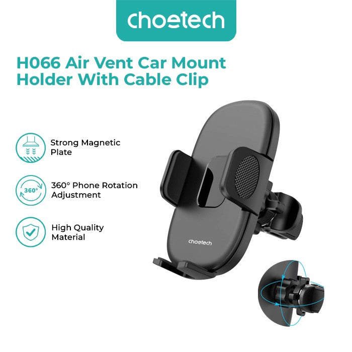 ### SELAMAT DATANG DI CHOETECH OFFICIAL ### Produk ready stock selama variasi masih aktif dan bisa dipilih , Jangan lupa follow toko dan sosial media kami untuk mendapatkan informasi produk dan promo menarik lainnya:) #34; Happy Shopping #34; NOTES : Produk Tidak Bergaransi Mohon membuat video unboxing saat membuka paket untuk kepentingan komplain Setelah barang diterima mohon mengecek kelengkapan dan fungsi produk, pastikan barang diterima dalam keadaan baik sebelum mengklik Pesanan Diterima. ================================================================== Choetech H066 Air Vent Car Mount Holder HP Mobil 1. Large plywood design, high-gloss surface in the middle, business temperament, silicone is set inside to better protect the mobile phone; 2. The splint adopts a gear-type clamping and silent design, intelligent buttons, and one-handed operation, which is convenient and quick; 3. Rotate the button to lock the bottom seat of the air outlet, upgrade the lengthened steel core plug, and thicken the silicone pad, which is non-slip and stable; 4. Neat and compact, installed at the air outlet, not blocking the line of sight; What you get : 1x Choetech H066 Air Vent Car Mount Holder HP Mobil