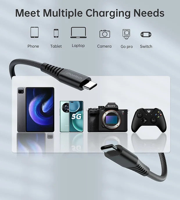 This versatile cable is compatible with a wide range of devices, including phones, tablets and laptops. The Choetech XCC-1054 cable offers up to 100 watts of power for instant device charging it can charge a MacBook Pro up to 76% in just 30 minutes. Equipped with advanced E-Marker chip technology, it intelligently recognizes connected devices, ensuring optimal charging and enhancing equipment safety. Made of durable materials, including nylon, the Choetech XCC-1054 cable is resistant to various types of mechanical damage. Its flexible design makes the cable resistant to bending and twisting, ensuring long-lasting use without risk of damage. With Choetech XCC-1054, you can enjoy reliable, fast and secure charging and data transfer, no matter where you are.