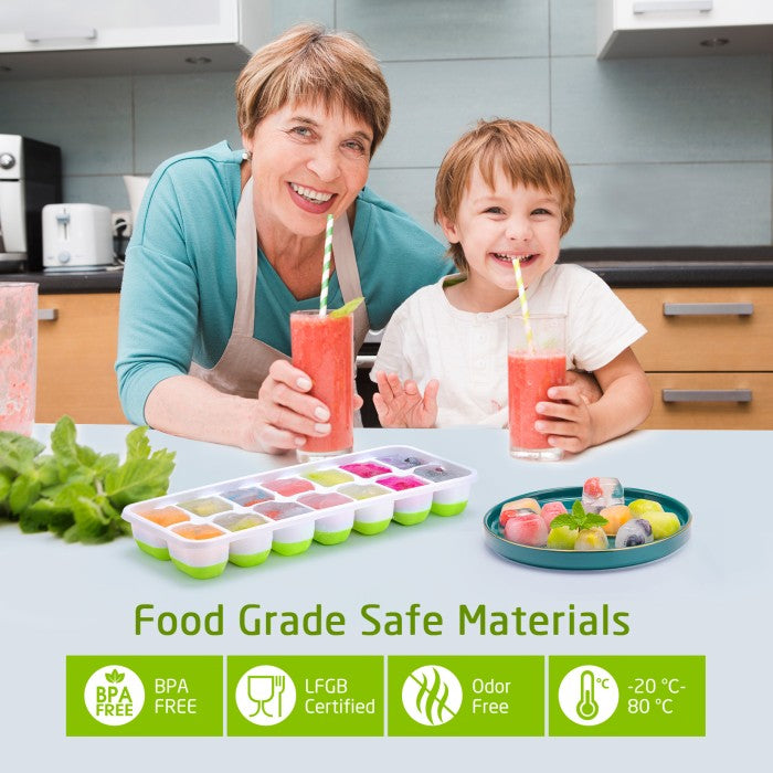 OMORC Ice Cube Trays, 4 pack, Easy Release BPA Free, Stackable, Dishwasher Safe, for frozen Baby Food, Drinks, Coffee and Fruit, 14, Green Material Silicone Color Green Brand OMORC Shape Rectangular Item Dimensions LxWxH 9.1 x 3.9 x 1.14 inches Tentang barang ini mudah untuk menghapus es batu: tidak ada lagi gulat untuk minuman es dingin: es batu kami langsung keluar! pelepasan cepat dan mudah- cetakan fleksibel kami membuat pelepasan es menjadi mudah; tidak perlu membungkuk atau memutar dengan canggung dan tidak ada lagi es batu yang merayap di meja atau lantai Anda menghemat ruang freezer: dengan tutup kami yang dapat ditumpuk dengan rapi: setiap cetakan es batu dilengkapi dengan penutup dan duduk di atas satu sama lain (lihat gambar produk utama untuk melihat): memaksimalkan ruang freezer dan menjaga es Anda tetap segar dan bebas bau mudah diisi dengan lebih sedikit kekacauan: cukup tuangkan air, tutup dengan penutup yang dapat ditumpuk dan bekukan; dengan es tertutup, tidak ada kekacauan di dapur Anda. Selain air, Anda dapat mengisi cetakan es batu dengan buah-buahan, es krim, soda, dan anggur untuk menyesuaikan rasa favorit Anda. kesehatan amp; keselamatan: terbuat dari bahan silikon dan pp yang disertifikasi oleh lfgb, 4 nampan es batu ini aman dan tahan lama. setiap nampan membuat 14 kubus berukuran bagus dengan total 56. bagus untuk digunakan di rumah, pesta dan bar dll Bentuk barang: Persegi Panjang