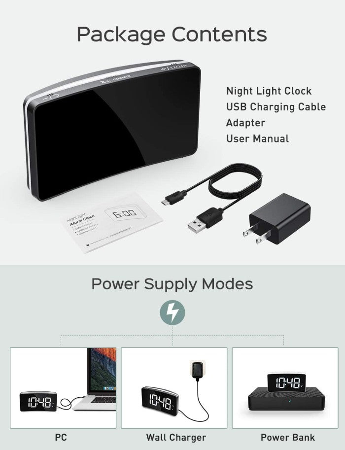 PICTEK Projection Alarm Clock, 5 #39; #39; LED Curved-Screen Digital Alarm Clock, 15 FM Radio, Dual Alarm with 4 Alarm Sounds, 6 Dimmer, 12/24 Hour, USB Phone Charger, Projection Clock on Ceiling Bedroom 15 FM Radio dengan Sleep Timer】Anda dapat menyimpan hingga 15 stasiun favorit dalam 76.0~108.0MHz. dilengkapi dengan pengatur waktu tidur (5-90 menit), dan radio akan mati secara otomatis setelah waktu tertentu. Stasiun radio dengan volume 15 tingkat juga dapat menjadi suara alarm untuk orang yang tidur nyenyak. Port Pengisian Daya Telepon USB amp; Memori Mati Anda dapat mengisi daya ponsel pintar melalui output USB 5V/1.2A. Jam proyeksi hanya bekerja melalui daya AC, tetapi dapat mengingat semua pengaturan saat dimatikan tanpa menyetel ulang. Alarm Ganda dengan 4 Suara dan 3 Volume】Dua alarm terpisah dirancang untuk penggunaan dua atau keluarga. 4 suara alarm (gelombang, nyanyian burung, akord atau radio FM) dengan 3 volume membangunkan bahkan orang yang tidur nyenyak. Jam alarm proyeksi memberi Anda 9 menit tambahan waktu tidur sebelum mengingatkan Anda lagi.