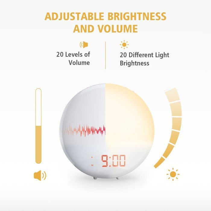 PICTEK Wake Up Light Alarm Clock, Sunrise Alarm Clock Light with 6 Alarm Sounds and FM Radio, Dual Alarms, Sunrise Duration Time, Fast Alarm Setting, Snooze Function, and Lamp amp; Midnight Light Pertimbangkan Simulasi Matahari Terbit Durasi default dari kurva bangun (meningkatkan kecerahan ke intensitas cahaya maksimum yang disetel) adalah 20 menit. Durasi dapat diatur sesuai keinginan Anda dari 5 menit hingga 40 menit untuk waktu alarm bangun Anda, secara bertahap membawa Anda keluar dari tidur nyenyak seolah-olah dibangunkan oleh alam untuk menyambut hari yang segar. Fungsi Tunda untuk Tidur Berat Saat jam alarm diputar, Anda dapat mengetuk tombol tunda untuk masuk ke mode tunda. Lampu tetap menyala, tetapi suaranya tidak terdengar. Setelah 9 menit, suara alarm akan diputar kembali. (Catatan: Jika Anda ingin membatalkan alarm, Anda dapat menekan tombol apa saja kecuali tombol matikan dan tombol snooze.) 6 Suara Alarm amp; Radio FM Jam alarm bangun memiliki 6 bel alarm berbeda yang memungkinkan Anda menyesuaikan alarm agar bangun lebih alami dan santai di pagi hari. Selain itu, Anda juga dapat mengatur Saluran Radio FM favorit Anda sebagai suara alarm. Lampu Samping Tempat Tidur yang Aman dan LembutTerbuat dari bahan yang sehat dan disertifikasi oleh CE/RoHS, lampu bangun ini tidak membawa zat kimia berbahaya dan bau aneh, cukup sehat dan ramah lingkungan untuk penggunaan jangka panjang. Desain dan Fungsi Menakjubkan Digital Jam alarm digital dilengkapi dengan 20 tingkat peredup, 20 tingkat volume, dan 6 mode kecerahan yang dapat disesuaikan, yang dapat memenuhi berbagai tuntutan Anda saat menggunakan, menghadirkan pengalaman yang luar biasa dan menakjubkan. TIDAK BERGARANSI
