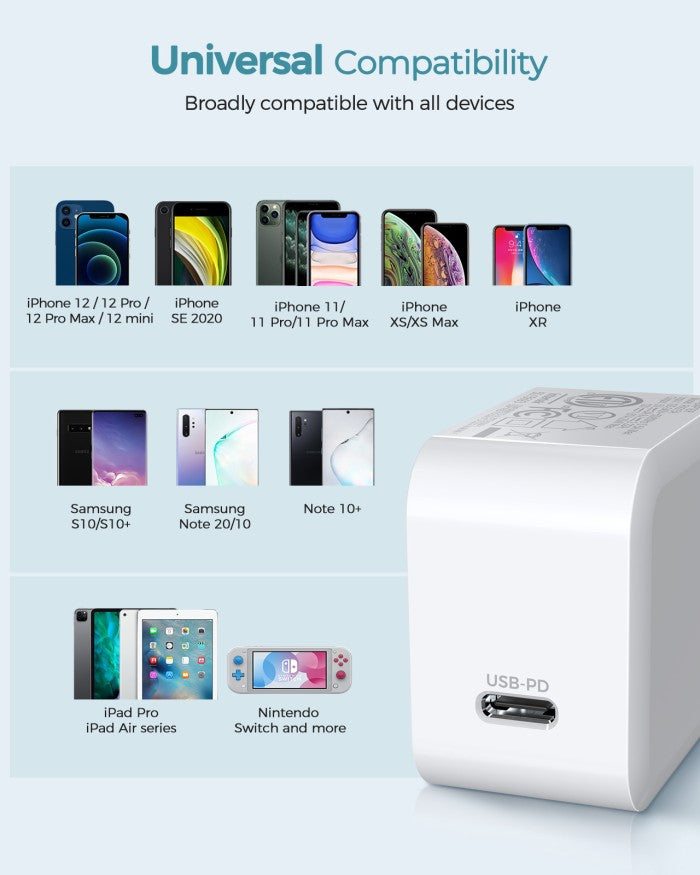 Tentang barang ini Adaptor Pengisian Cepat 3X untuk iPhone 12 Series: Dibandingkan dengan pengisi daya dinding 5W (5V/1A), kecepatan pengisian dayanya 3 kali lebih cepat dari adaptor standar, yang berarti hanya perlu 2 jam untuk mengisi penuh iPhone Anda. Daya ultra-tinggi pengisi daya Seneo USB C mengisi berbagai perangkat, daya maksimum saat mengisi daya mencapai 20W. PD 3.0 yang luar biasa: Adaptor pengisi daya Seneo 20W menerapkan spesifikasi PD 3.0 (Pengiriman Daya) untuk pengisian daya, yang berarti dapat secara luas kompatibel dengan lebih banyak model ponsel untuk pengisian cepat, dan juga kompatibel dengan PD 2.0, secara ekstensif untuk menyediakan pengisian cepat pengisian untuk perangkat. Kompatibilitas Komprehensif: Dengan pengisi daya dinding Seneo 20W untuk mengakses pengisian cepat untuk iPhone 12/12 Mini/12 Pro/12 Pro Max/11/11 Pro/11 Pro Max/XS/XS Max/ XR/X/8 Plus/8 /7/7 Ditambah/6; untuk Samsung Galaxy S20/S10/S10e/S10+/S9/S9+/S8/S8+/Note 20/Note 10/Note 9/Note 8; untuk iPad Pro 10.5”/ iPad Air 3 10.5”/ iPad Mini5 7.9”dan Lainnya. Keserbagunaan USB-C: USB-C jauh lebih cepat dan lebih fleksibel daripada USB-A, dan desain yang dapat dibalik cocok dengan port ke mana pun arahnya dibalik; lebih kuat daripada port yang lebih lama dan dapat dengan mudah memberi daya pada perangkat yang lebih besar. Pengisian Aman: Chip cerdas internal di Seneo melindungi pengisian daya dari arus berlebih dan korsleting selama proses berlangsung; adaptor dilindungi oleh ETL, FCC, Sdoc, dan DOE, yang lebih dijaga saat diduduki. Isi Paket: Adaptor pengisi daya dinding Seneo 20W PD diakomodasi dalam paket, harap dicatat bahwa tidak ada kabel pengisian data dalam paket karena kabel pengisi daya perangkat yang berbeda berbeda.