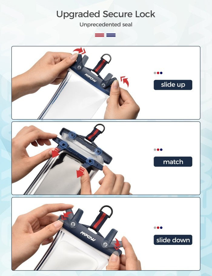 DESKRIPSI PRODUK Tampilan berdesain baru: Biru laut dengan lanyard bergaris merah delima dan bodi yang dicetak dengan sablon sutra membuat kantong ponsel tahan air terlihat klasik dan sederhana. Beda dengan tas waterproof lainnya yang biasa bikin kamu luar biasa. Casing ponsel tahan air IPX8: menawarkan perlindungan penuh hingga 100 kaki di bawah air. Ini memberikan perlindungan menyeluruh untuk ponsel Anda dari air, pasir, debu, dan kotoran. Sebelum digunakan, silakan lakukan tes aman untuk memeriksa apakah tahan air atau tidak. Kunci aman yang tidak dapat ditembus: kunci segel yang ditingkatkan mengubah metode segel dari sebelumnya, untuk secara efektif mengontrol risiko kebocoran. Kiat kecil: Silakan berdiri di sayap kunci yang aman untuk pertandingan. Bahan TPU lembut: TPU premium membuat kantong telepon tahan air menjadi khas, keuletan yang sangat baik dari kantong telepon tahan air tetap lembut pada minus 5. Kebutuhan di musim dingin olahraga luar ruangan ski, berenang. Kompatibilitas Luas: Kantong kering Mpow kompatibel dengan hampir semua ponsel hingga 6,8 inci, untuk iPhone 11 Pro Max, XR, XS, X, 8/7/6 Plus; Samsung Galaxy S10 S9 S8 S7 Catatan 10 Catatan 9 Catatan 8; Nokia 7; Piksel 4, 3; Moto; Sony dan Lainnya.