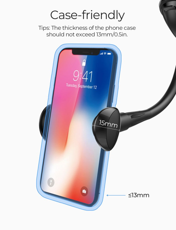 TIDAK BERGARANSI Wowteez Car Phone Holder, Windscreen Phone Mount for Car with Strong TPU Suction Cup and Spring Clip, Compatible iPhone 11 Pro Max 11 Pro XS Max XS XR X 8 7 Plus, Galaxy Note 10 S10 S9, Nexus, LG, Etc. Dudukan fleksibel dan dapat disesuaikan: Dudukan ponsel mobil memiliki lengan panjang yang fleksibel dan dapat disesuaikan 157mm, dan kepala putar 360 derajat memungkinkan Anda untuk memposisikan ponsel dalam arah vertikal dan horizontal untuk tampilan yang optimal. Perlindungan penuh: dudukan ponsel mobil aluminium leher angsa tebal dan stabilizer perekat yang kuat memastikan stabilitas maksimum; bantalan karet lembut melindungi perangkat tanpa meninggalkan goresan di telepon. Cangkir hisap yang diperbarui: dukungan mpow untuk ponsel mengadopsi cangkir hisap yang diperbarui yang tahan panas dan dingin, dan dapat memulihkan viskositas jika dicuci dengan air hangat dan biarkan mengering di udara. Mudah dipasang: sistem pendukung ponsel satu sentuhan, cukup tekan tombol di bagian belakang dudukan smartphone untuk membebaskannya dan tekan penutup untuk mengunci telepon; konektor pengisian daya tersedia. Kompatibilitas luas: Dukungan ponsel MPOW kompatibel dengan sebagian besar ponsel dengan casing, termasuk iPhone 11/11 Pro/11 Pro Max/XS/XS/XR/X/8/7/7P/6S, Samsung Galaxy S10/S9 Plus/S9 /Note 8/S8 Plus/S8/S7 Edge/S6 Edge/Note7/Note5, Sony, Huawei. xiaomi, htc, lg dan topi lainnya dengan layar antara 4,7 dan 6,5 inci (10 dan 15 cm); itu juga cocok untuk digunakan di sebagian besar kendaraan.